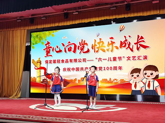 為慶祝中國共產(chǎn)黨建黨100周年,2021年5月30日保定馨冠食品有限公司于馨冠文化藝術館舉辦“童心向黨 快樂成長”暨六一兒童節(jié)文藝匯演活動。