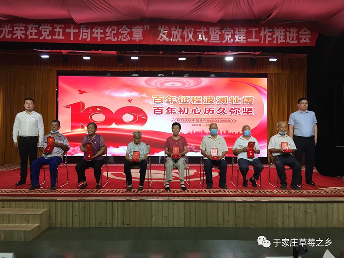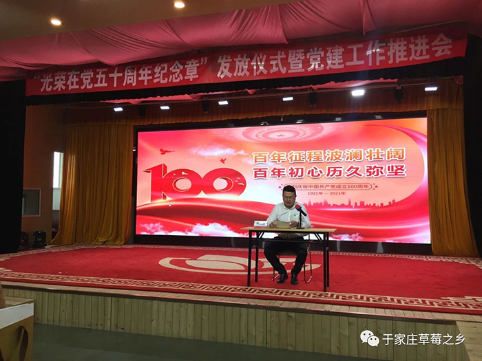 薪火相傳守初心,接續(xù)奮斗新征程。為慶祝中國共產(chǎn)黨成立100周年,推進(jìn)黨史學(xué)習(xí)教育走深走實,進(jìn)一步增強廣大黨員的榮譽感、歸屬感和使命感,激發(fā)廣大黨員愛崗敬業(yè)、奮發(fā)有為的工作熱情,6月29日上午,于家莊鎮(zhèn)“光榮在黨50年紀(jì)念章”發(fā)放儀式暨黨建工作推進(jìn)會于保定市冠香居食品有限公司3樓“馨冠文化藝術(shù)館”隆重舉行。